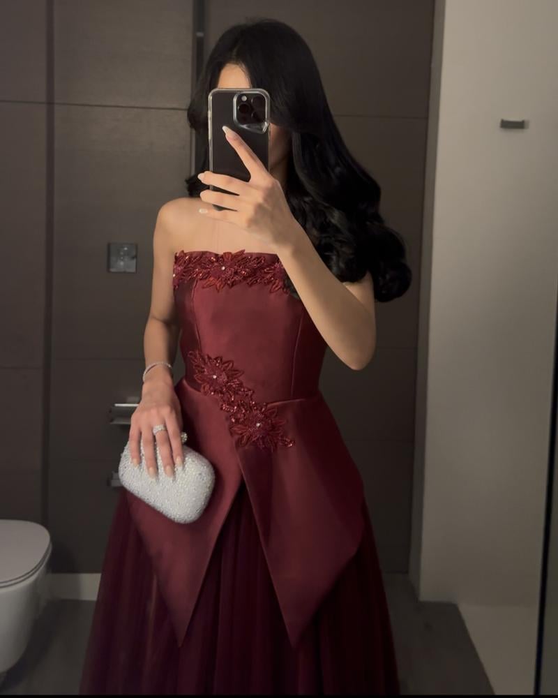 مواصفات الفستان:نوع الفستان : سهرة وناعم.نوع القماش : ميكادو + وتل + كلفة تطريز.طريقة التفصيل : قماش ميكادو مطرز وتل طويل .التفاصيل الإضافية: قماش ميكادو مطرز وتل طويل انيق .