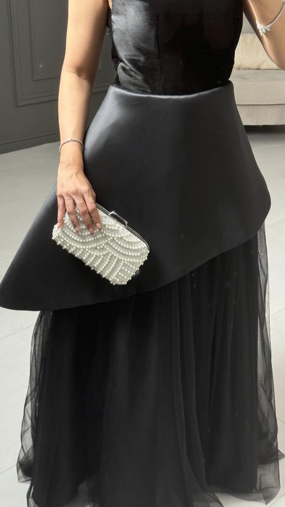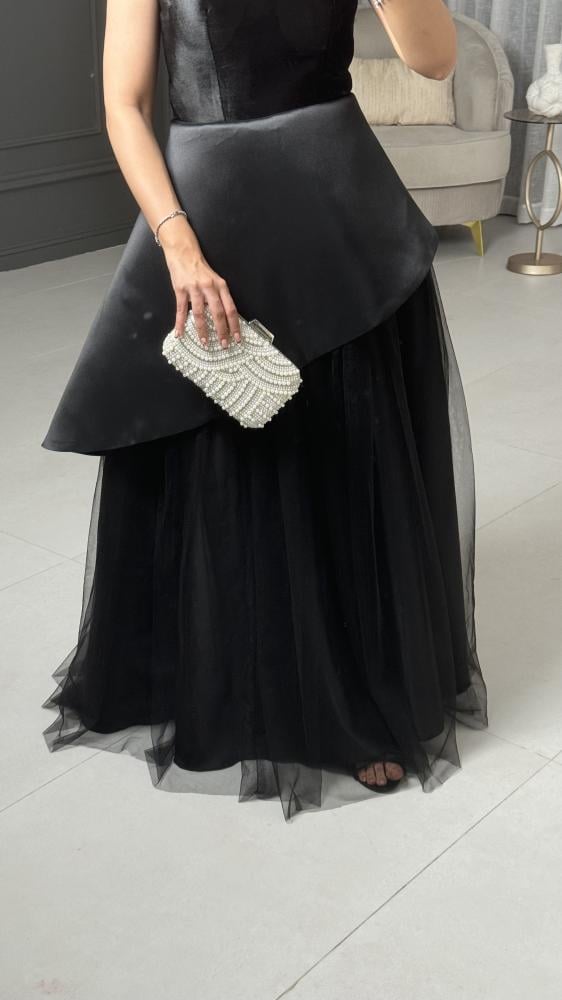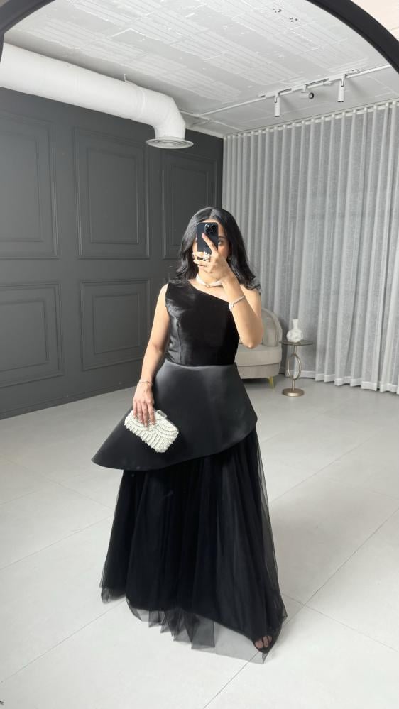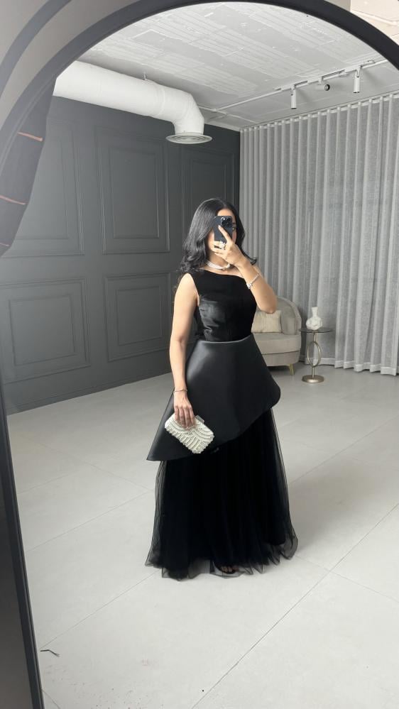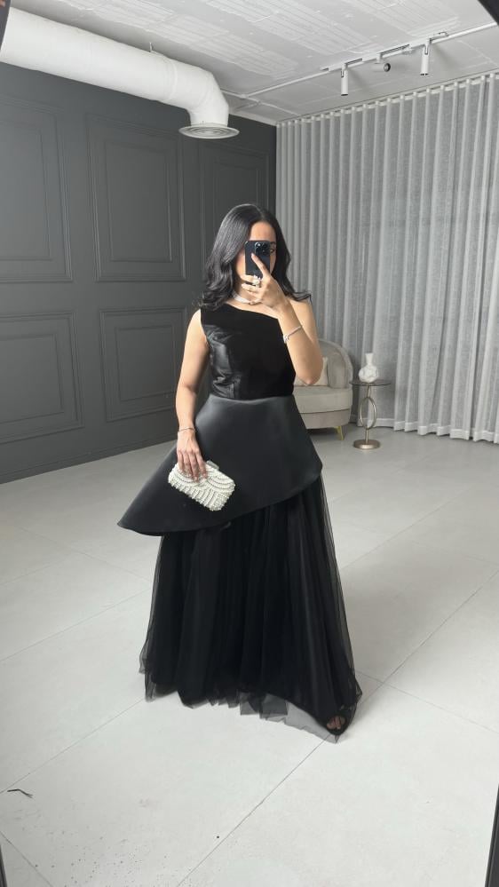 مواصفات الفستان:نوع الفستان : سهرة وناعم.نوع القماش : قطيفه +ميكادو + وتل .طريقة التفصيل : قماش الصدر قصه قطيفه مع قصه الميكادو المايله .التفاصيل الإضافية:فستان طويل انيق .