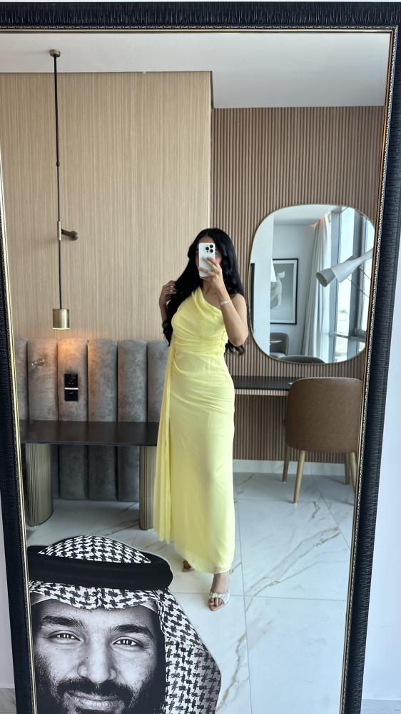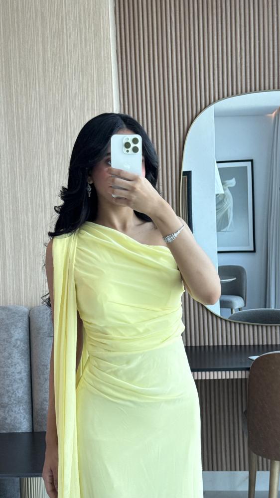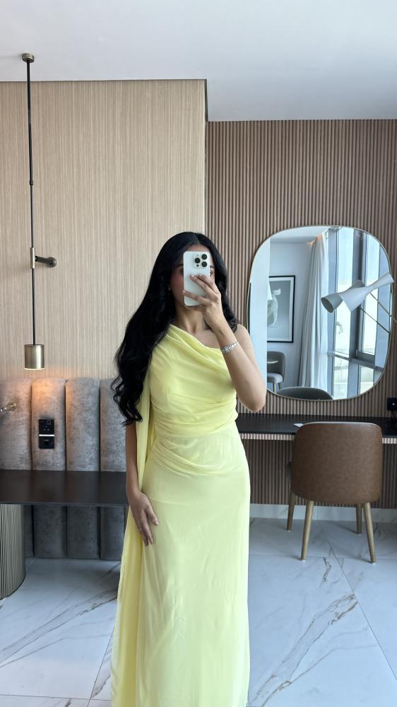 مواصفات الفستان:نوع الفستان : ناعم.نوع القماش : شيفون .طريقة التفصيل : قماش شيفون وكم طويل . التفاصيل الإضافية: فستان كم طويل مع كسرات الصدر .