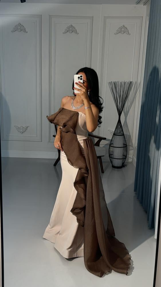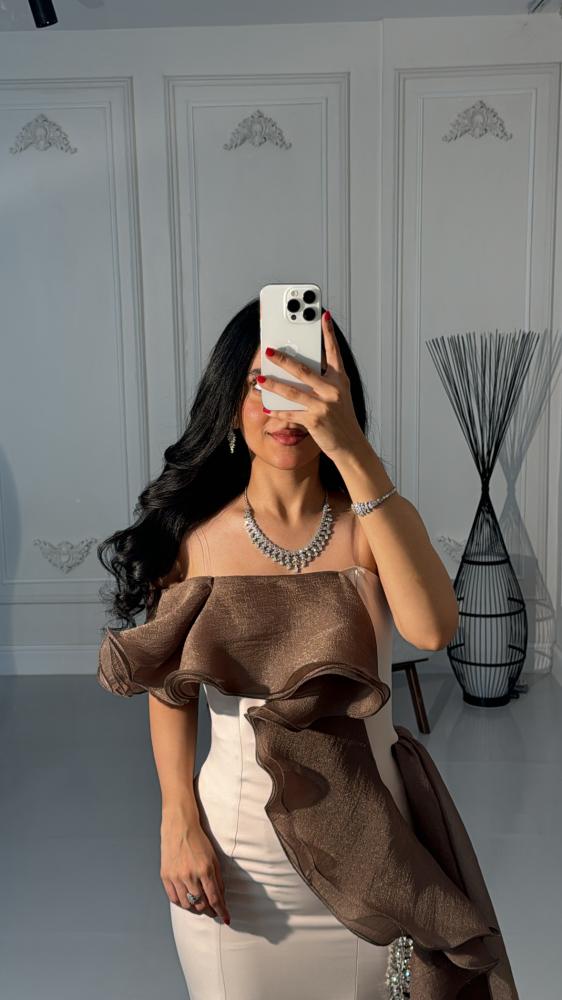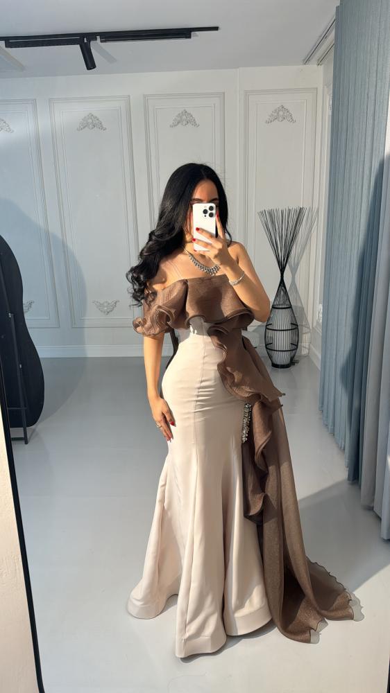 مواصفات الفستان:نوع الفستان : سهرة .نوع القماش : باربي وشييفون .طريقة التفصيل قصتين لف من الشيفون وكرستال لمعة بالخصر. التفاصيل الإضافية: فستان سهره انيق .