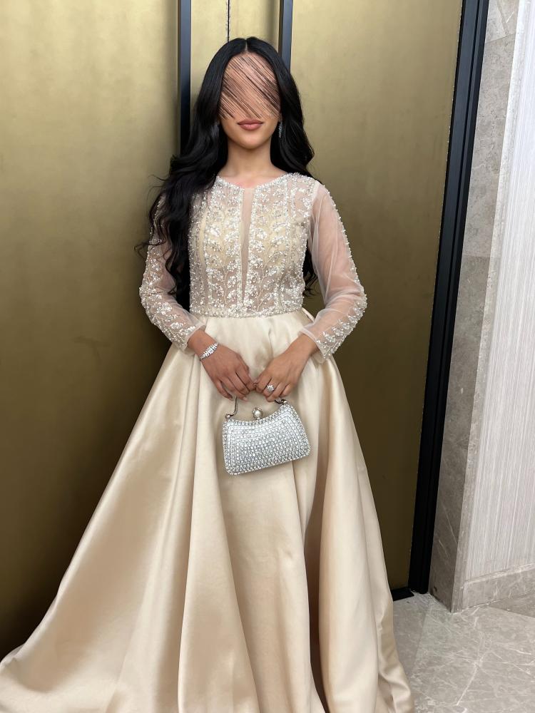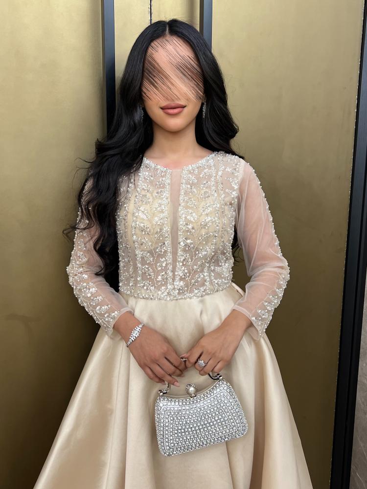 مواصفات الفستان:نوع الفستان : سهرة .نوع القماش : تل مطرز الى الخصر ميكادو من الاسفل .طريقة التفصيل : تل مطرز فضي الى الخصر . التفاصيل الإضافية: فستان سهره انيق .