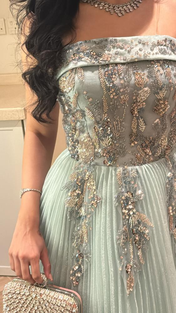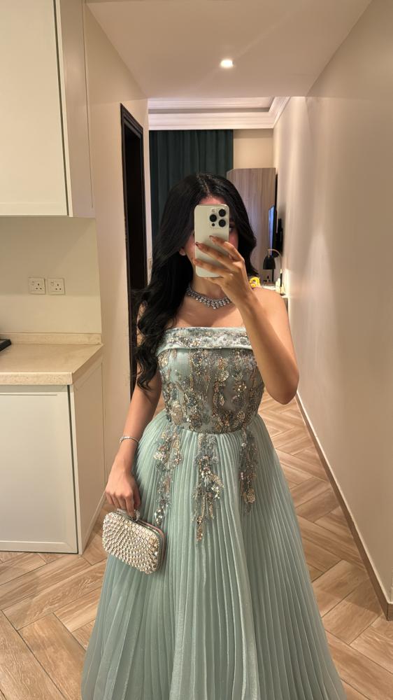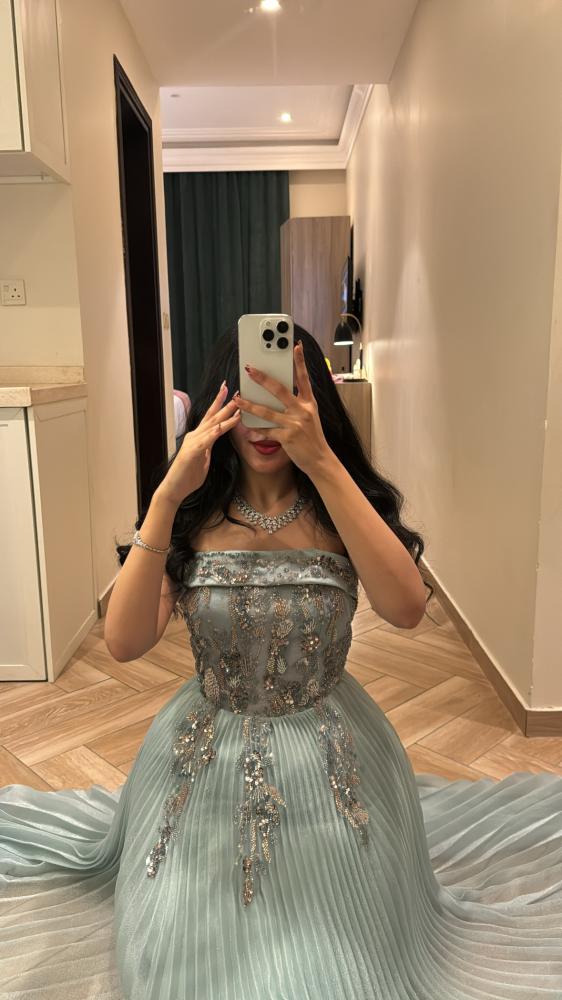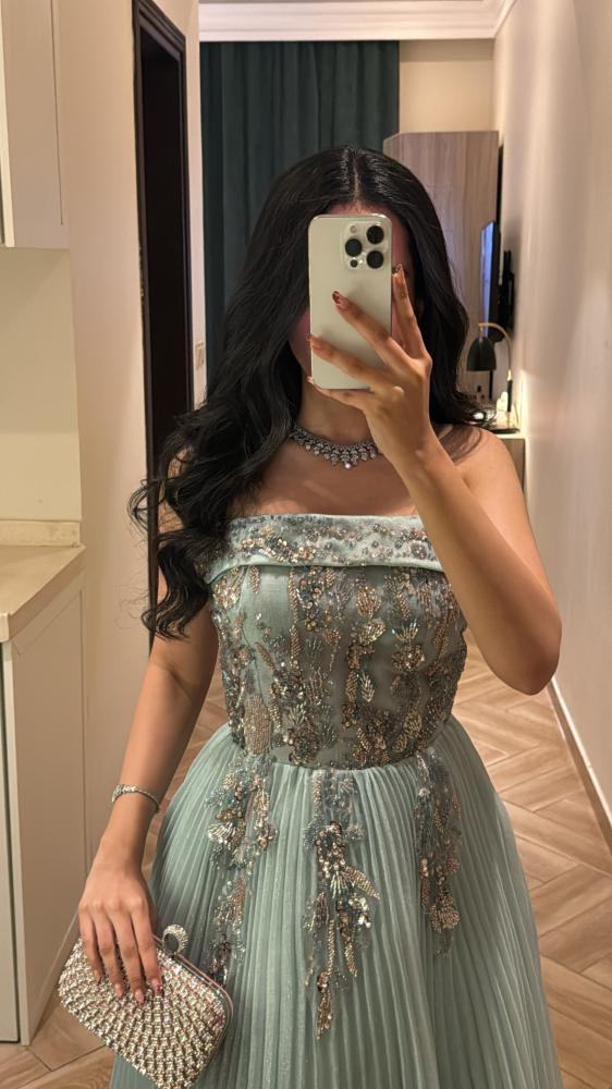 مواصفات الفستان:نوع الفستان : سهرة .نوع القماش : شيفون تكسير .طريقة التفصيل :كلفه ورود مطرزه وشويفون كسرات. التفاصيل الإضافية: فستان سهره انيق .
